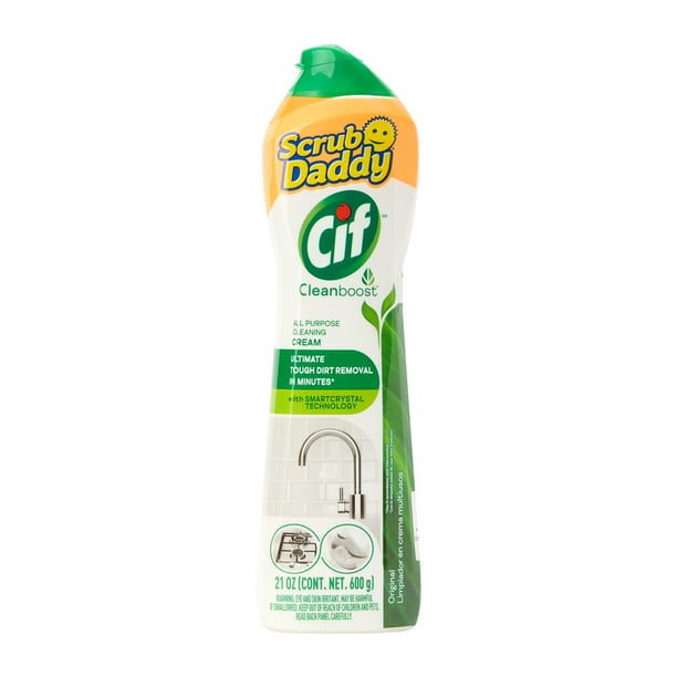 Scrub Daddy teams up with Cif in an exclusive collaboration that brings powerful, multi-surface cleaning to your home in our 21 oz bottle. Formulated with SmartCrystal Technology, this advanced cream cleaner contains millions of ultra-fine cleaning crystals that break down and lift stubborn messes—like encrusted grease, soap scum, and food stains—in minutes. Designed for effective dirt removal and a lasting shine, the thick, low-effort formula clings to surfaces without the need for harsh chemicals or overpowering odors. It’s safe to use on a wide range of materials, including chrome, marble, enamel, brass, ceramics, and more—perfect for kitchens, bathrooms, and beyond. Pair with a Scrub Daddy sponge or our ultra soft Microfiber Towel for optimal performance. A little goes a long way to leave your home fresh, spotless, and gleaming. Avoid use on linoleum or textiles.