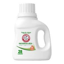 ARM & HAMMER Sensitive Skin Free & Clear Liquid Laundry Detergent is gentle on skin, but powerful on dirt. This free and clear detergent is concentrated with 2X powerful stain fighters in every load versus the leading value detergent, making it powerful enough to handle your toughest loads in all wash temperatures, even cold water. Free from dyes, perfumes and preservatives, this hypoallergenic laundry detergent is dermatologist-tested and certified 100% by SkinSAFE. This low-sudsing laundry soap rinses clean and works in standard machines and High Efficiency (HE) models as an effective and efficient hypoallergenic detergent.